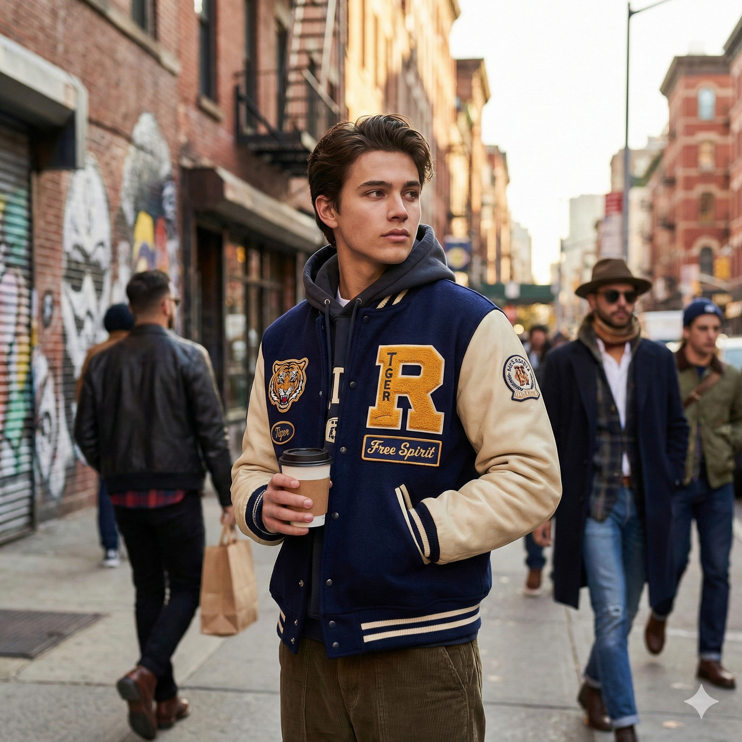 Every jacket is designed to stand out in a city environment, making a bold statement against the urban backdrop